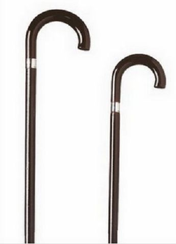 Canne de malade bois verni, poignée courbe