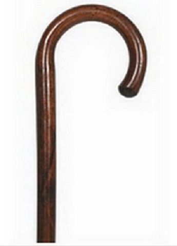 Poignée courbe en hêtre. Mât en hêtre. Finition : vernis teinte noyer. Hauteur sol > poignée = 92cm