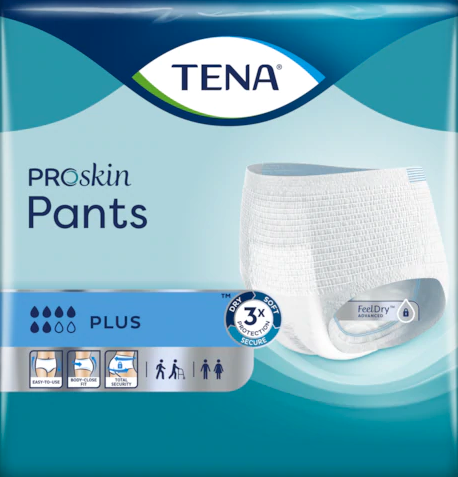 Les sous-vêtements absorbants TENA Pants Plus sont doux et confortables. Ils sont conçus pour les hommes et les femmes, et sont efficaces de jour comme de nuit. Contrairement aux protections pour adultes classiques, les sous-vêtements TENA Pants ProSkin sont dotés d’une technologie avancée en matière de réduction de l’humidité offrant une garde au sec, une sécurité anti-fuites et un contrôle des odeurs. Assurant une sécurité totale, FeelDry Advanced™ capture rapidement le liquide, et le noyau hautement absorbant absorbe alors rapidement l’urine, même en grande quantité, laissant la peau bien au sec, pour aider à préserver la santé de la peau. Ces sous-vêtements absorbants jetables sont faits dans une matière sensation textile micro-aérée et ont une capacité d’absorption remarquable. En s’enfilant comme un sous-vêtement, ils encouragent un mode de vie actif.